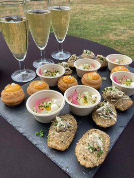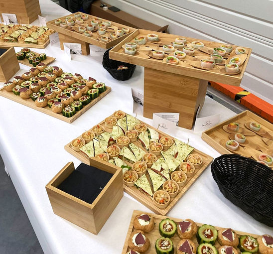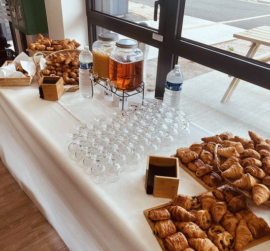 Pour cette occasion, nous avons préparé un cocktail déjeunatoire composé d’un assortiment de bouchées variées, idéal pour un moment de partage et de convivialité.